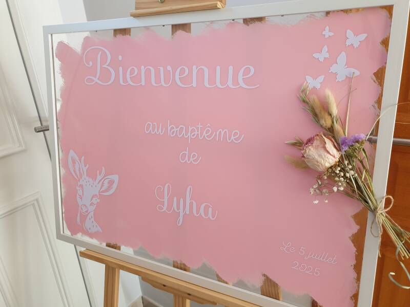 Je réalise également votre panneau de bienvenue 100%personnalisé, baptême, mariage, anniversaire...